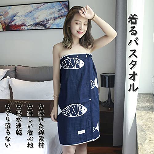 Tibemi ラップタオル 大人用 着るバスタオル レディース 純綿ガーゼ 魚柄 吸水 速乾 バスタオル 大判 巻きタオ