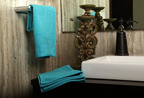 サイズと数量:各セットには、4つの特大バスタオルが含まれています。各タオルのサイズは16x28インチ(41 x 71 cm)です。カラー-アクアブルー