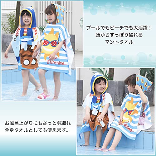マントタオル キッズ ビーチタオル バスタオル アニメ柄 大きめ 吸水 蛍光剤不使用 色落ちしない キュート鮫