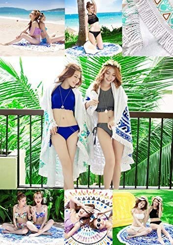 ラウンドビーチタオル 夏 大判ビーチマット ビーチレジャーシート 厚手 バスタオル 海水浴 肩掛け 超吸水 ボ