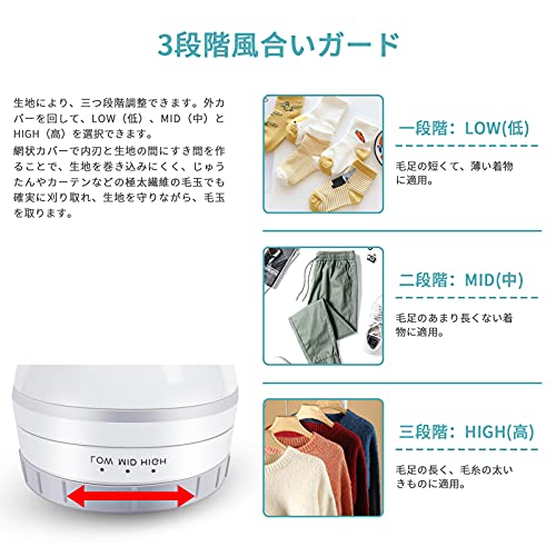 【大幅改良安全装置した付属品】(1)毛玉取り器はセキュリティー保護設置が内蔵しており、内部カバーをしっかり締めないと、毛玉取り機が動けないので、お子様がある家族でも安心して使うことができます。(2)長い掃除ブラシ従来品より手軽に掃除できます。毛玉ボックスを綺麗に