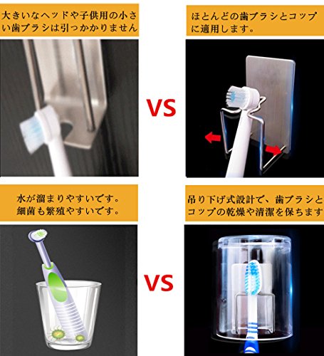 【健康を守る】細菌が歯ブラシやコップによって口腔に入ることを避けるため、吊り下げ式設計で速乾性があるので、水や湿気の溜まりでカビや水垢を起こることを防ぎます。一日歯ブラシなどの乾燥や清潔感を保てます。