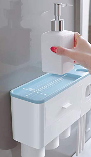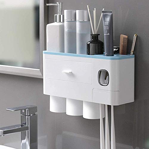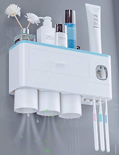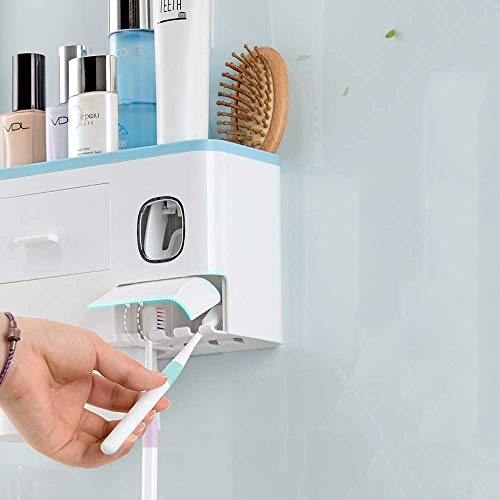 【自動歯磨き粉ディスペンサー】自動歯磨き粉絞り器を搭載した歯ブラシホルダーです。 ディスペンサーは、歯磨き粉の無駄を防ぐために毎回最適な量をしぼって、自動的に元へと配ってくれます。