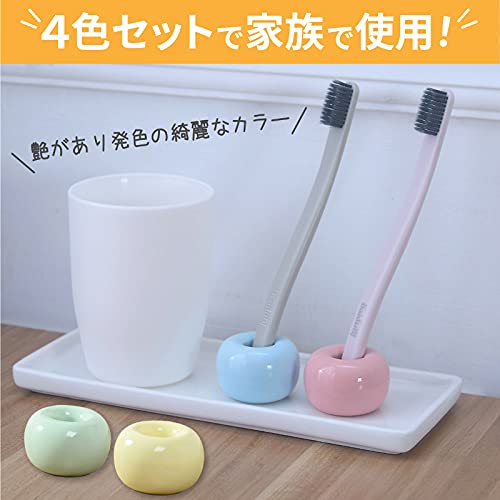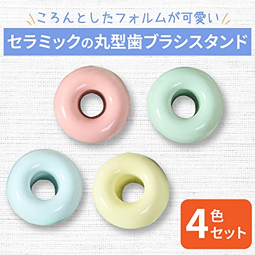 dodtazz 歯ブラシスタンド 丸型歯ブラシ立て 歯ブラシホルダー 4色セット セラミック 洗面台 (4色セット)