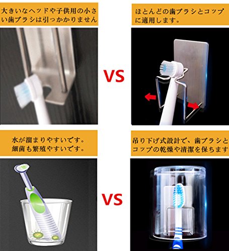 【使用が簡単で便利】壁掛け式で、スペースを節約して便利な歯ブラシスタンドです。普通の歯ブラシだけではなく、電動歯ブラシや剃刀等もすっきり収納できます。