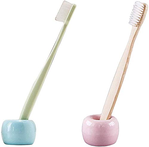 セラミック歯ブラシスタンド、ミニ浴室用収納オーガナイザー用ハンドメイド歯ブラシホルダースタンド (3ピ
