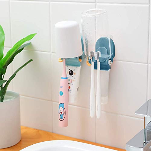 スペースセーバー-壁に取り付けられた各歯ブラシホルダーには、2つの歯ブラシまたは電動歯ブラシ、1つのカップと1つの歯磨き粉を入れることができます。家族、小さなアパート、学校の寮に適しており、洗面台の混乱を避けるためにトイレタリーを効果的に管理できます。パッケージに含まれるもの:2x歯ブラシホルダー。注:パッケージには歯ブラシとカップは含まれていません。