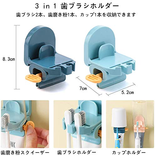 壁に取り付けられたInmorven歯ブラシホルダー2パック、多機能歯磨き粉スクイーザー、省スペースの歯ブラシホ