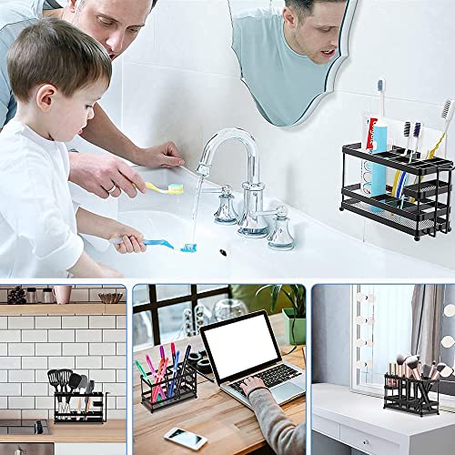 【高い収納力】この歯ブラシホルダーには、電動歯ブラシ、化粧品、カミソリ、歯磨き粉、カップなどを収納できます。4人家族のニーズを満たすことができます。