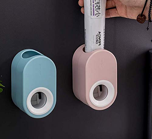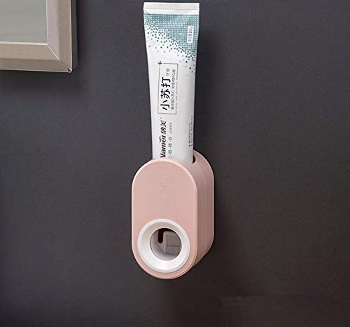 壁掛け式 自動歯磨き粉ディスペンサー 使用便利 取り付け簡単 穴開け不要 取り外し可能 洗える 家族用 (ピ