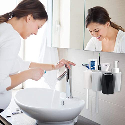 歯ブラシスタンド 吸盤 コップ3個付き 歯ブラシホルダー 壁掛け 防塵衛生 家族用 洗面所 収納 (ブラックグレ