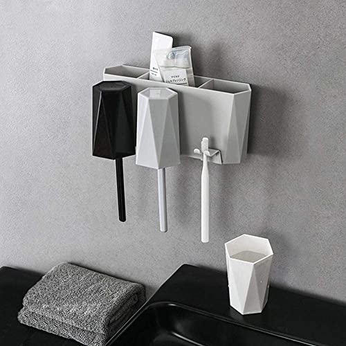 | 商品名 | 歯ブラシスタンド 吸盤 コップ3個付き 歯ブラシホルダー 壁掛け 防塵衛生 家族用 洗面所 収納 (ブラックグレ |