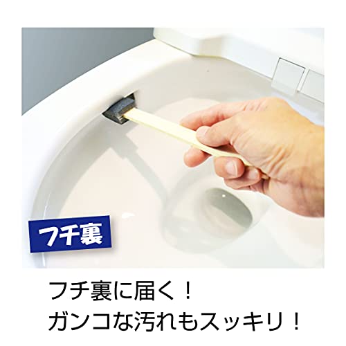 手を汚さない木製の柄付きでフチ裏のスミズミまで汚れを落とします。