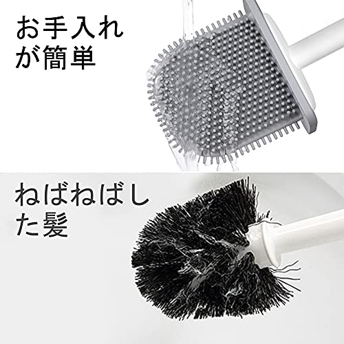トイレブラシ ケース付き TPR材質 水はね防止 通気 防菌 壁掛け式 (ホワイト)