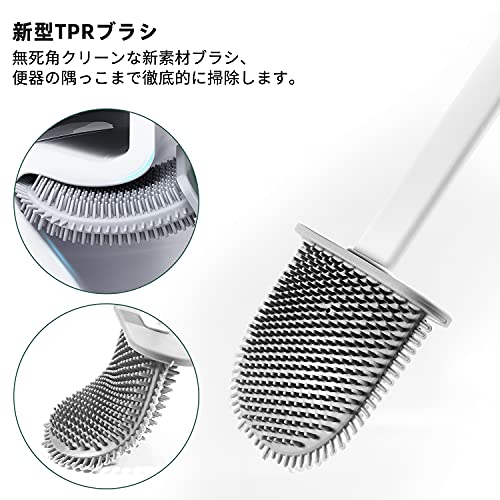 トイレブラシ、シリコン、トイレとトイレの360°クリーニング、壁に取り付けることができる白い収納ボック