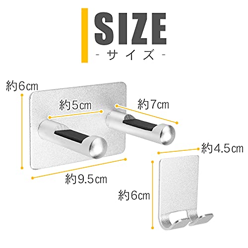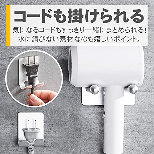 シンプルな設計で、掛けるドライヤーの種類を問いません。ばらつきやすいコード用のフックも掛けられるのですっきり収納できます。 強力な防水両面テープでの取り付けなので穴あけや工具不要で誰でも簡単に収納場所が増やせます。