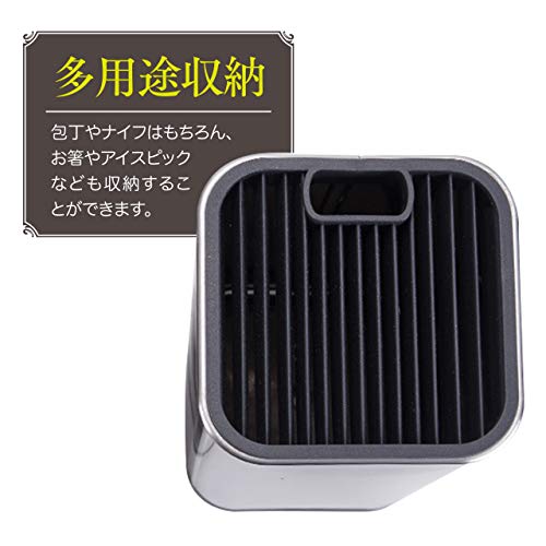 黒とシルバーの洗練されたカラーデザインです。小物収納機能つき。スタンドには包丁だけでなく、箸やアイスピックなど、様々な調理用品が収容できます。まるごと水洗いができるのでとっても衛生的です。
