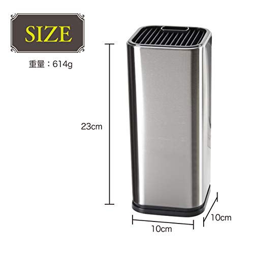 ステンレス製でサビにくい包丁スタンドです。銀の輝きは高級感があり、キッチンに包丁、ナイフやアイスピックといった調理用品を収納することでインテリアとして映えるのでおすすめです。安定感があるので収納して倒れる心配がありません。