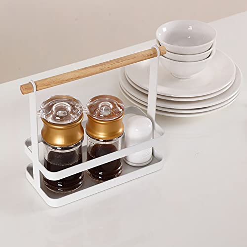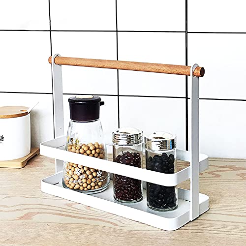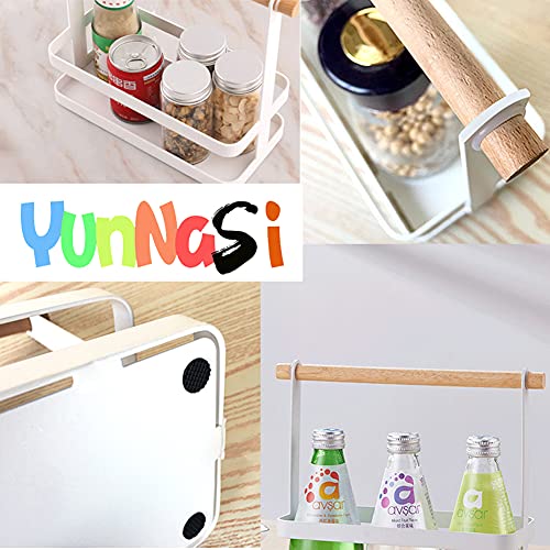 YunNasi 調味料ラック 持ち運び スペースラック キャンプ 小物収納 木製持ち手付き キッチン収納 調