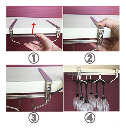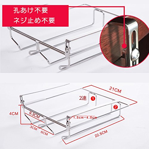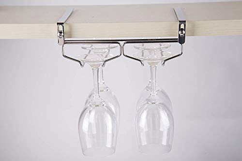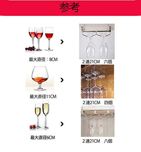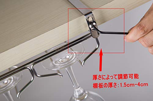 ワイングラスホルダー 吊り下げ ステンレス製 穴あけ不要 棚厚さによって調節可能 (2レーン)