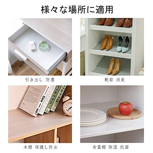 【高品質EVA材質】Wishday食器棚シートは優れたEVA材料を採用しており、湿気を効果的に防ぎ、乾いた状態を保ちます。また、ズレにくい素材のEVA樹脂に防虫剤を塗布して、これまでの防虫剤と異なり、成分が周囲にひろがらないので、空気を汚さず、ニオイもありません。棚板の風合いをそのまま活かして敷ける、透明タイプです