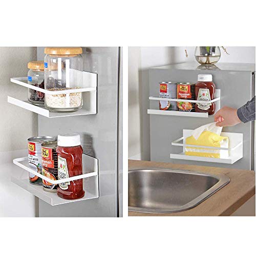 冷蔵庫サイドラック マグネット 磁石 スパイスラック ペーパーホルダー タオル掛け おしゃれ (2個 ホワイト)