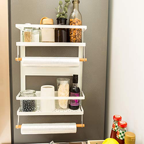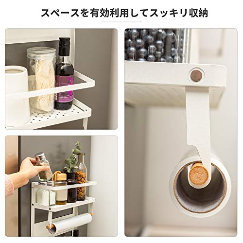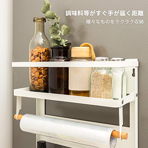 E-ROOM TREND 冷蔵庫洗濯機収納ラック 冷蔵庫サイドラック2段 キッチンペーパー収納 強力マグネットタイプ ペー