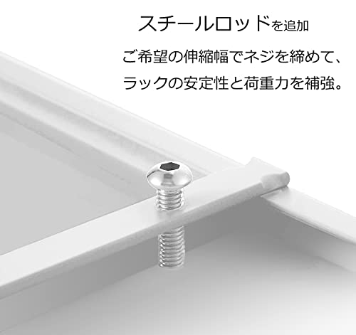 【耐荷重】約10kg/1個 高品質のスチール素材は耐荷重性や耐久性に優れ、変形しにくいです。棚板の背面に荷重力補強スチールロッドが追加され、安定性もあげます。シンク上やシンク下のスペースをカンタンに利用。