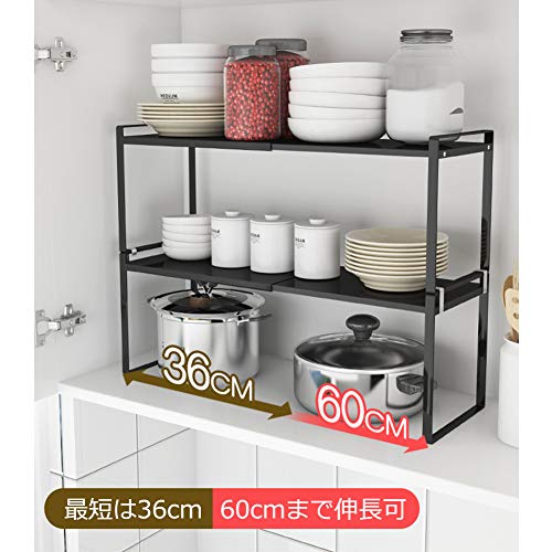 | 商品名 | PASRLD キッチンワイドラック 伸縮式 シンク下収納棚 約W36~60×D20.5×H15cm 積み重ね可能 排水口カバー 食器棚収納 |