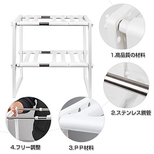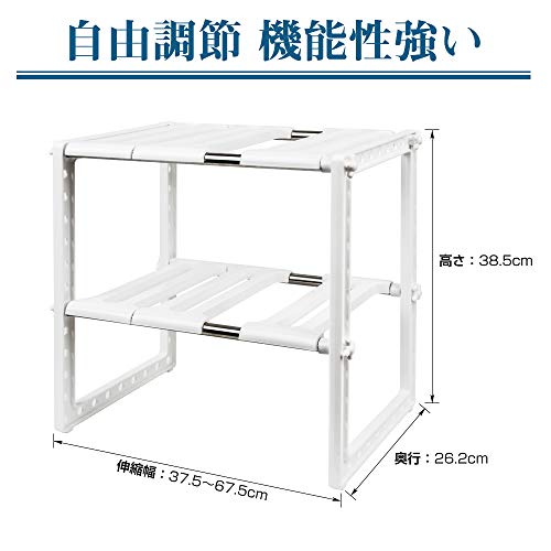 | 商品名 | kinlight シンク下伸縮棚 キッチン収納 すきま収納 収納2段 洗面ラック フリーラック伸縮タイプ組立式 ホワイト |