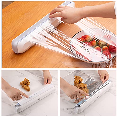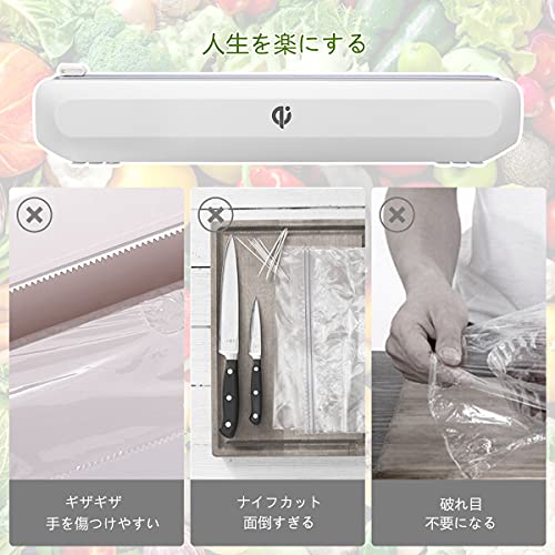 「ファッショナブルな外観&各場所に適応」:ラップフィルムディスペンサーは小さくて柔軟性があり、滑らかなラインがあり、持ちやすく、食品をすばやく簡単に詰めることができます。美しい形はまたそれがあなたの他の台所装飾を補完するようにします。調理済みの食品を包んで、ほこりやスープが漏れないようにすることができます。新鮮な肉を包んで、食べ物の臭いを防ぐことができます。果物や野菜を包んで水分の損失を防ぎ、より美味しくすることができます。