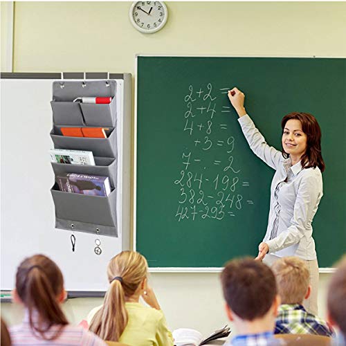 1.【大容量収納】3段の大きいポケットと2個小さいポケットの5個ポケットデザインなので、本、CD、年賀状、新聞、雑誌、郵便物などのA4サイズ書類を収納できます。メガネ、リモコン、文房具、腕時計 など様々な小物も収納できて、下のフックにも鍵とネックレスなどをかけることができます。分類収納に便利です
