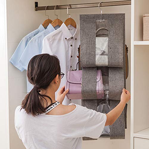 ArcEnCiel バッグ収納 カバン収納 吊り下げ収納ラック ハンガーラック 両面収納 5ポケット高級綿の麻 水洗い可