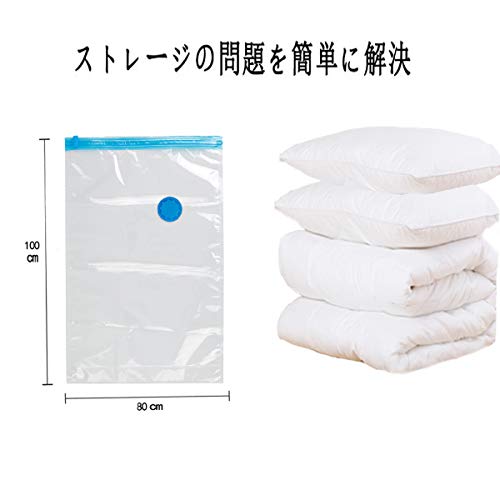 QFふとん圧縮袋 6枚(100x80cm)防塵防湿 カビ、ダニ対策 敷布団収納可 布団??袋 掃除機対応 収納/引越し/衣替え