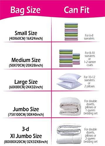 90パーセントのスペースを節約し、予算を節約-家族全員で使用できる大型の掃除機バッグをお探しの場合は、Winslow&Rossの3D掃除機バッグをお選びください。1個の3D掃除機バッグは3個のジャンボサイズに相当します。バキュームバッグ、2つの大きな羽毛布団と2つの枕を1つの3Dバッグに入れることができます!