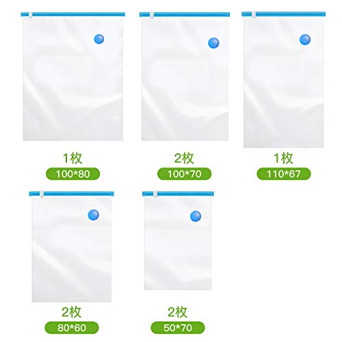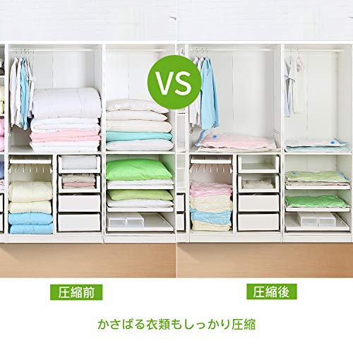 [大容量・8枚入り]: 圧縮袋(LL)10080 1枚 圧縮袋(L)10070 2枚 圧縮袋(M)8060 2 枚 圧縮袋(S) 5070 2枚 垂れる式圧縮袋11067 1枚 手動ポンプ1枚 Mサイズは服、タオル、枕から化粧品などの小物に対応でき、Lサイズは布団、枕や大きめの衣類などに対応でき、LLサイズは布団、毛布などに対応できます。