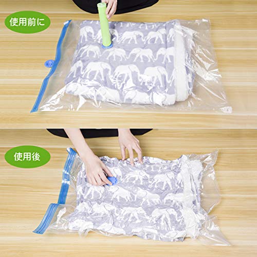 BASSTOP 圧縮袋 衣類圧縮袋 収納袋 圧縮パック 手巻き式 ポンプ不要 真空パック袋 省スペース 密封 防塵防湿 防
