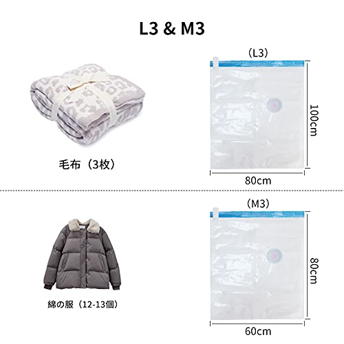 "【布団圧縮袋おすすめ】防塵、防湿、防カビ 6枚入り(3XL+3L)は、12~15kgの掛け布団3枚、25~28枚の羽毛布団やその他の枕、毛布、薄手の衣類などを簡単に収納できます 。 "