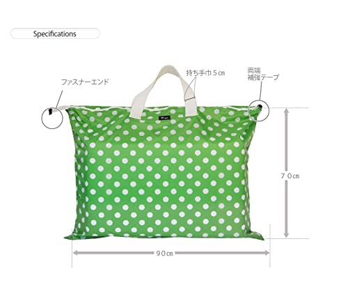 OFTON お昼寝布団バッグ 水玉 お布団バッグ 布団収納袋 撥水 ファスナー付き (水玉グリーン)