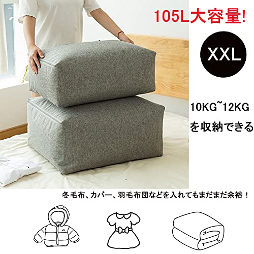 【大容量】105L大容量の布団収納ケースが冬毛布、カバー、羽毛布団などを入れてもまだまだ余裕!使わない時、小さく折りたたみでき、うちのどこにおいてもよろしいです。