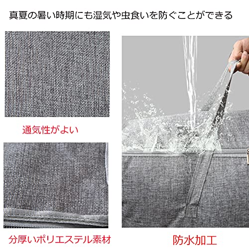 【通気性がよい】羽毛布団収納ケースが防水加工ポリエステル素材を採用し、通気性がよいので、真夏の暑い時期にも湿気や虫食いを防ぐことができます。