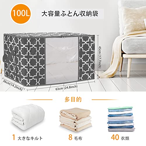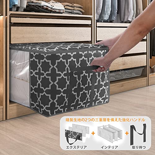 LHZK 布団収納袋 大容量 3点セット 衣装ケース 取っ手付き 布団袋 クリア窓付 布団しゅうのう袋 不織布製 無臭