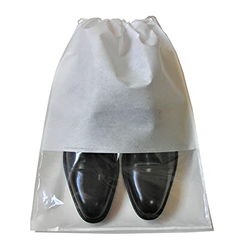 靴袋 巾着 不織布 シューズバッグ 収納袋 服入れ 透明窓付き 靴収納ケース (白, Lサイズ 20枚入)