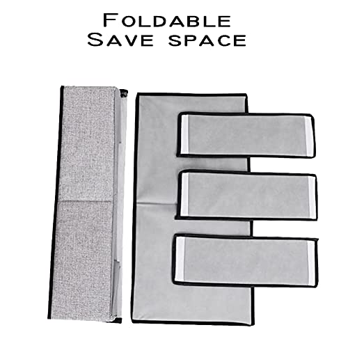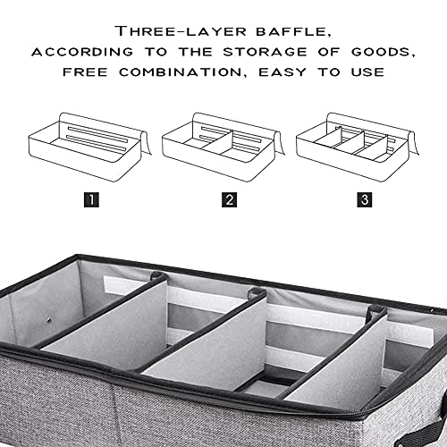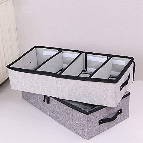 サイズ:22.8インチx11.8インチx5.5インチ// 58 cm x 30.5 cm x 14 cm(長さ x 幅 x 高さ)生地、このベッド下収納ボックスは通気性のあるリネン布でできています; 4つのハードボードが収納ボックスを4つに分割します コンパートメント; 可動式の仕切り付き、箱全体が折りたためるデザイン、カバーが柔らかく、仕切りが取り外し可能、空でもいっぱいでも1つずつ積み重ねることができます。使用する必要がない場合は、折りたたんでスペースを節約できます。便利です。 どこにでも持ち運んだり、片付けたりできます。