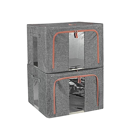 窓付収納ボックス 大容量収納ケース 衣類収納 透明窓付き 布団 コンパクト 折りたたみ 取っ手付き 小物収納