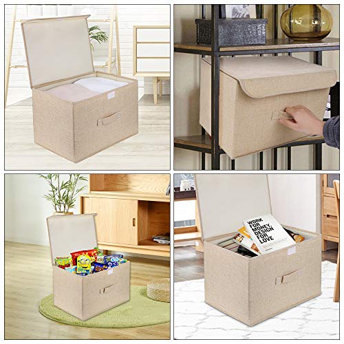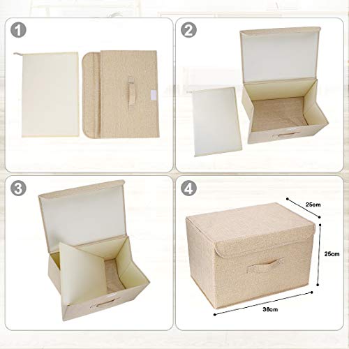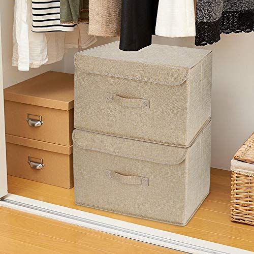 DIMJ 収納ボックス 収納ケース ふた付き 折り畳み 防塵 大容量 綿麻 衣類 おもちゃん 書類 2点セット (ベージュ)