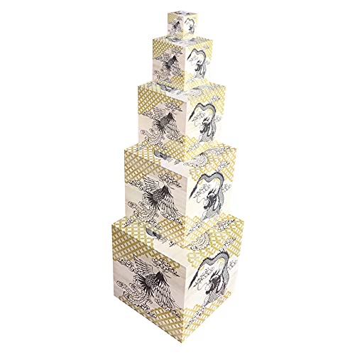 桐箱 デザインプリント総桐箱 キューブ/立方体タイプ 鳳凰龍 (5サイズセット)