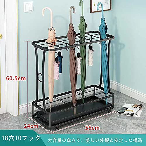 | 商品名 | 傘立て 傘収納 18本立て 10フック付き かさたて レインラック 大容量 玄関収納 錆止め 水受けトレイ付き 安定 |