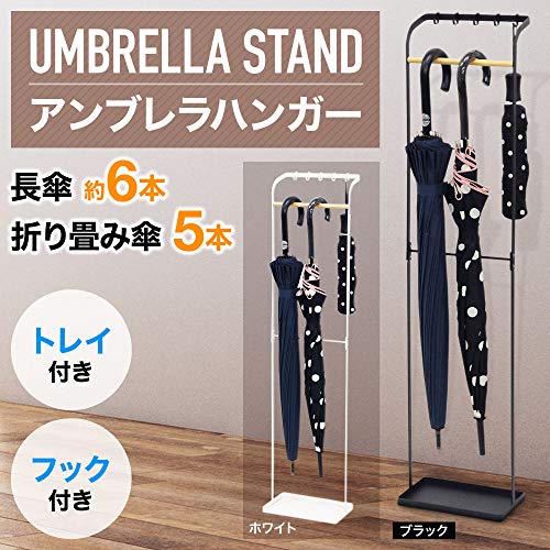 SUGGEST アンブレラハンガー 傘立て 選べるカラー スチール製 トレイ付き フック付き (ホワイト)