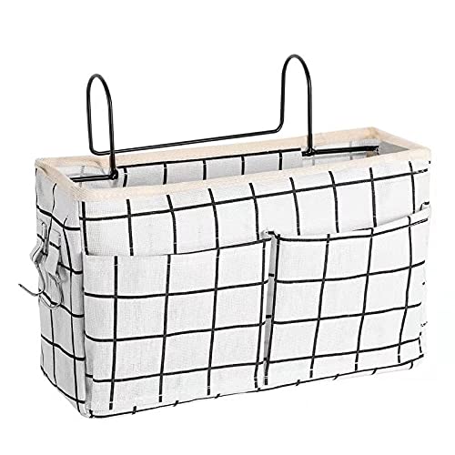 収納袋枕元ポケットアクセサリー収納棚入院便利袋寝室ポケット学生寮リモコンバッグ、キーホルダー (白格+